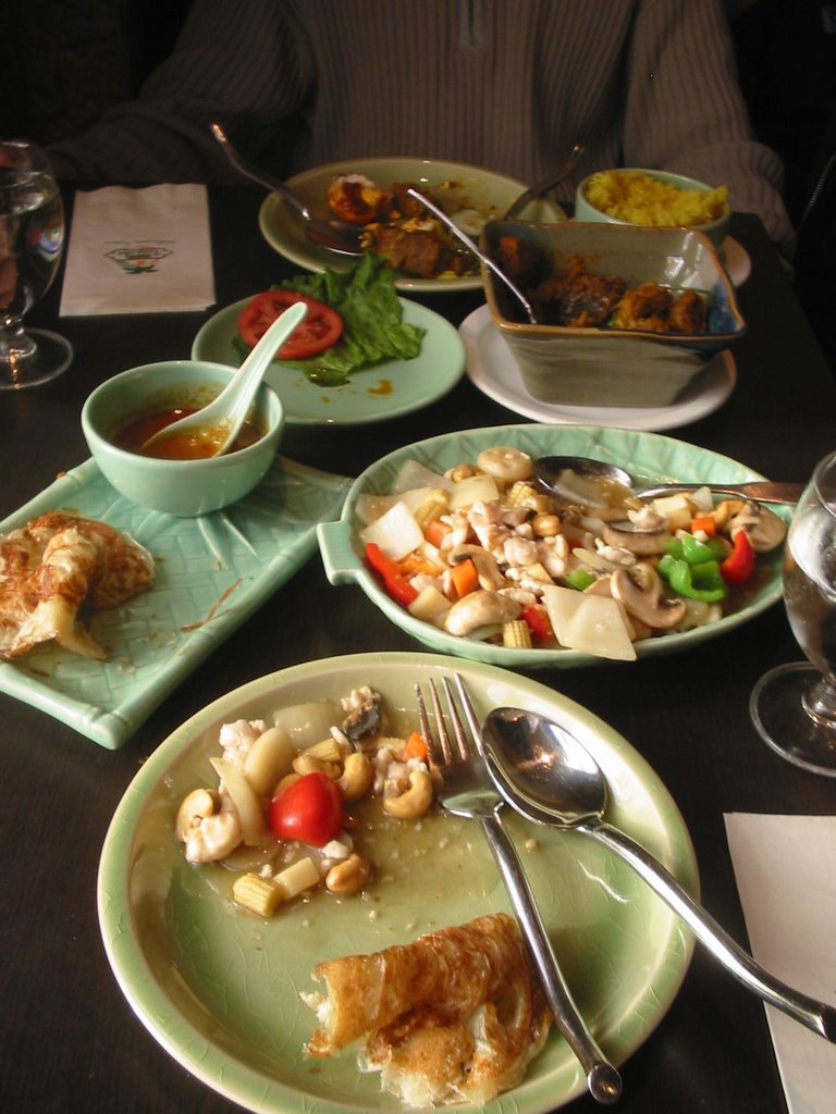 A maláj kenyér, hogy némi gasztronómiát is csöppentsek élménybeszámolómba, teljesen ugyanolyan ízű mint egy jó édes palacsintatészta. Bár úgy tűnik a szakácsnak nem volt palacsintasütője, és ezért jóval kisebb darabkákat hozott, és nem is sütötte át teljesen. A kesudiós csirke egyébként rendkívül ízletes volt, rengeteg zöldséggel és enyhé savanykás szósszal.