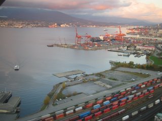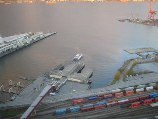 A kikötő, ahol a vasúton érkező konténerek száz-számra kerülnek a hajókra és a darukon keresztül oda-vissza (lásd még Róma, utak) Baloldalon a másik SeaBus érkezik, szóval kb 10-12 perc alatt értem körbe :)