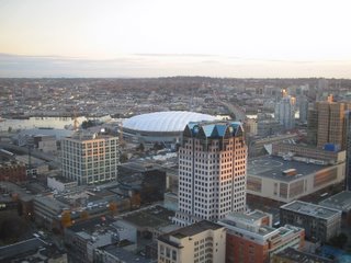 Mindezekután nekiálltunk keresni egy helyet, ahol megnézhetjük a Colorado elleni hokimeccset lehetőleg nem túl messze a toronytól, hogy a második szünetet és a második harmad elejét beáldozva éjszakai látvány is táruljon a szemem elé a befizetett napijegyért. A legnagyobb megelégedésünkre a Roxy Pubba mentünk be (egy sikertelen kör után) Itt asztalonként ki voltak osztva a játékosok, és ha véletlenül Baumgartner szerzett volna gólt a Vancouvernek, egy ingyen pia öblítette volna torkunkat.