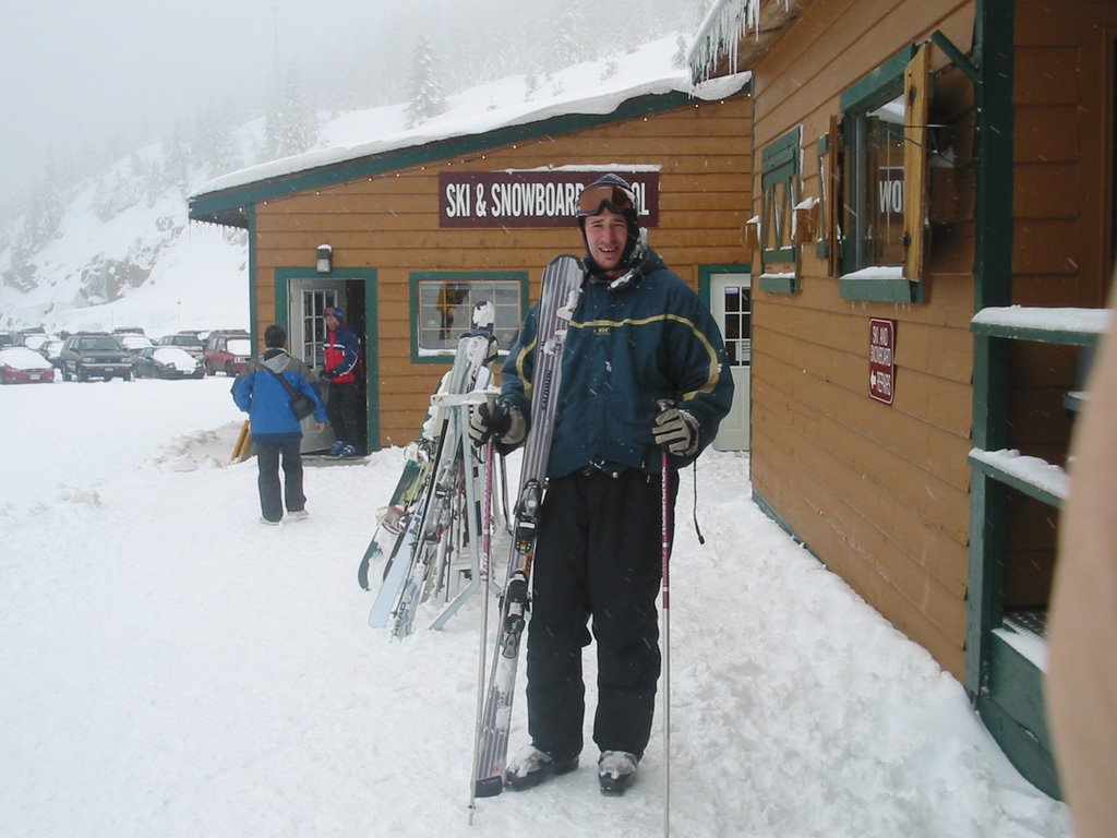 Vasárnap Duncan-nek köszönhetően - aki még szombatra szervezett nekünk egy közös síelést, amiről a whistleri kirándulásunk miatt csak aznap este értesültünk - a Cypress Mountain síelési lehetőségeit próbáltuk ki. Martinnak volt némi helyismerete, konkrétan ő már volt ott síelni. A friss hónak köszönhetően, ami szinte folyamatos utánpótlást kapott ottlétünk alatt, remek minőségű pályán próbálgattam tudásomat. A látási viszonyok nagyon rosszak voltak főleg a hegy tetején, ez az utolsó előttire tervezett körben meg is bosszulta magát, ugyanis nem vettem észre hogy mennyire mély hóra szaladok rá és bemutattam egy bukfencet és még jól meg is ütöttem magam, úgyhogy utolsónak nyilvánítottam a lesiklásomat, és miután kiderítettük a busz menetrendjét leadtuk a léceket és betértünk ebédelni a hüttébe (erre most nem keresek se magyar se angol szót)