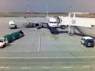 It was pretty nice weather during the fligh over Europe I took some pictures of the Danube which is out of its channel. (pictures of this will come later, i am having problems geting information from the CF card)Some pics from Heathrow...
