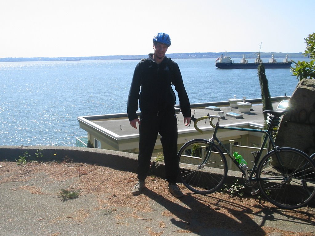 A túra célja az volt, hogy a múlt vasárnapi buszos legurulás során meglátott "kilátóhoz" kerekezzünk fel. Ezt persze Jenn némileg félreértette, hiszen ő arra gondolt, hogy feltekerünk a HEGYRE (annak is a tetejére). A túra végül 70 kilométeresre sikerült (ez a kerékpárral megtett távolság) Reggel a féltízes seabus-szal behajóztunk a belvárosba, és Jennifer lakásán vételeztünk kerékpárt, beállítottuk az üléseket és útnak indultunk: először a kerékpárkölcsönzőt vettük célba, ugyanis British Columbia területén nem csak saját egészségünk megóvása, hanem a törvény szerint is érdemes sisakot viselni.