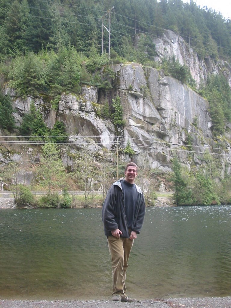 Whistler kb 1000 méter magasan fekszik, így az óceán egy idő után hegyekbe váltott, és egy folyó/patak völgyében küzdöttük magunkat felfelé. Nagyon jó tempóban tudtunk haladni, bár elég nehezen barátkoztam meg az automata sebváltóval. Nem messze a céltól egy tüneményes kis tavat pillantottunk meg, Murrin Lake a neve és mögöttem látható