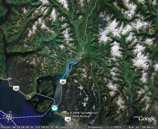 Bevásároltunk az útra, ezzel is csökkentve a Whistleren felmerülő költségeket, majd nekiindultunk a kb 120 kilométeres útnak, ami a "Sea to Sky Highway" nevet viseli ez a kanadai 99-es főútvonal (tehát pont az amerikai 66-os tükörképe a hátrra :)