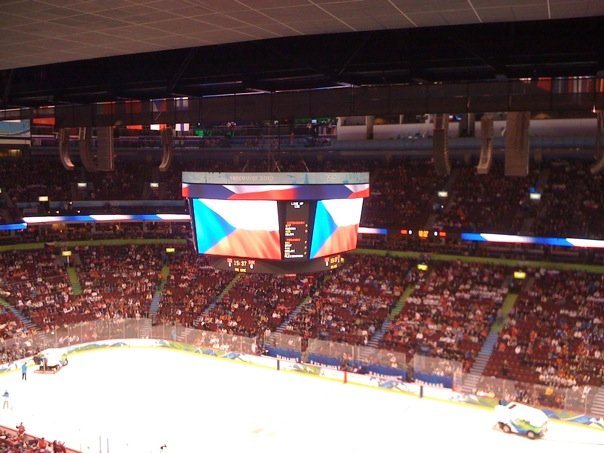 Az ünneplés folytatódik. Szerdán voltam meccsen, mint a mellékelt ábra is mutatja. A csehek játszottak a szlovákokkal egy jóféle hokimérkőzést a hangulat remek volt. Azóta voltak még jobbféle meccsek is, de a krém amúgy is vasárnap lesz. Meg persze jövő héten, amikor már búcsúzkodás is lesz muhahaha.