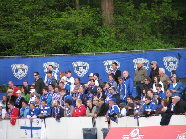 A hoki mellett - lásd még lentebb - megtaláltam a sportélményt, ami eleddig nem került említésre a blogon, főleg azért mert keveset írtam idén, és ugye viszonylag friss elfoglaltság. A csapat neve Vancouver Whitecaps, illetve annak - félve írom le - ultrái, a Southsiders. A csapat jövőre az ismertebb profiligában, az MLS-ben játszik majd. Ettől persze még a meccsek színvonala - főleg idén az USSF D-2 ligában - mérsékelten haladja meg az anno NB2-es Nagykanizsai Olajbányász mérkőzéseket, amiket hasonló rendszerességgel látogattam. A stadion, és a nézőszám alapján is mindenképpen abba a kategóriába sorolandó a bajnokság. Az európai összefoglalógat jövőre is max akkor ütjük meg, ha vagy Beckhamet (LA Galaxy) vagy Henryt (NY Red Bull) durván lerúgja valamelyik balbekk az itteni meccsükön, amit egyébként nem kívánok egyikőjüknek sem.